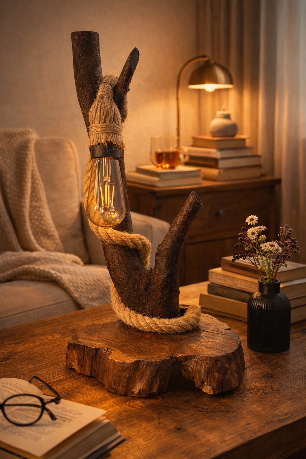 Be the first to review “Dual Branch Roped Wood Lamp”